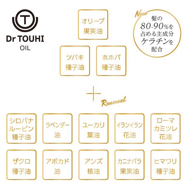 新たに10種類の天然オイルと髪の主成分であるケラチンを配合。
